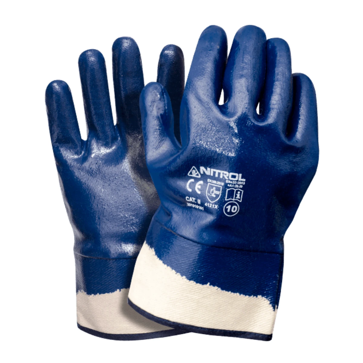 Kokvilnas darba cimdi ar stiprinātu manžeti, nitrila gumijas pārklājums, modelis NITROL